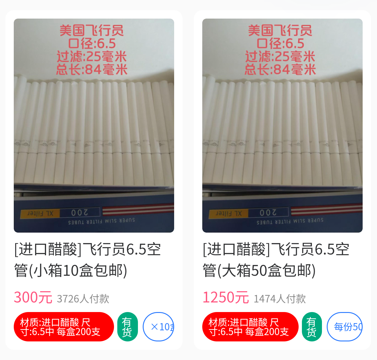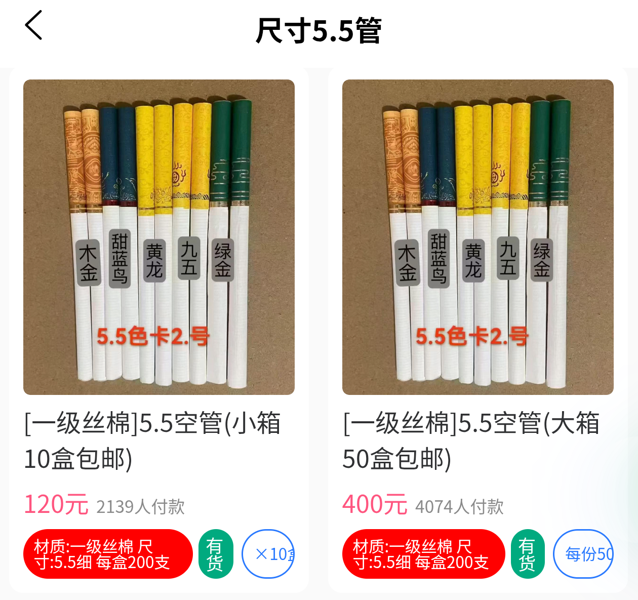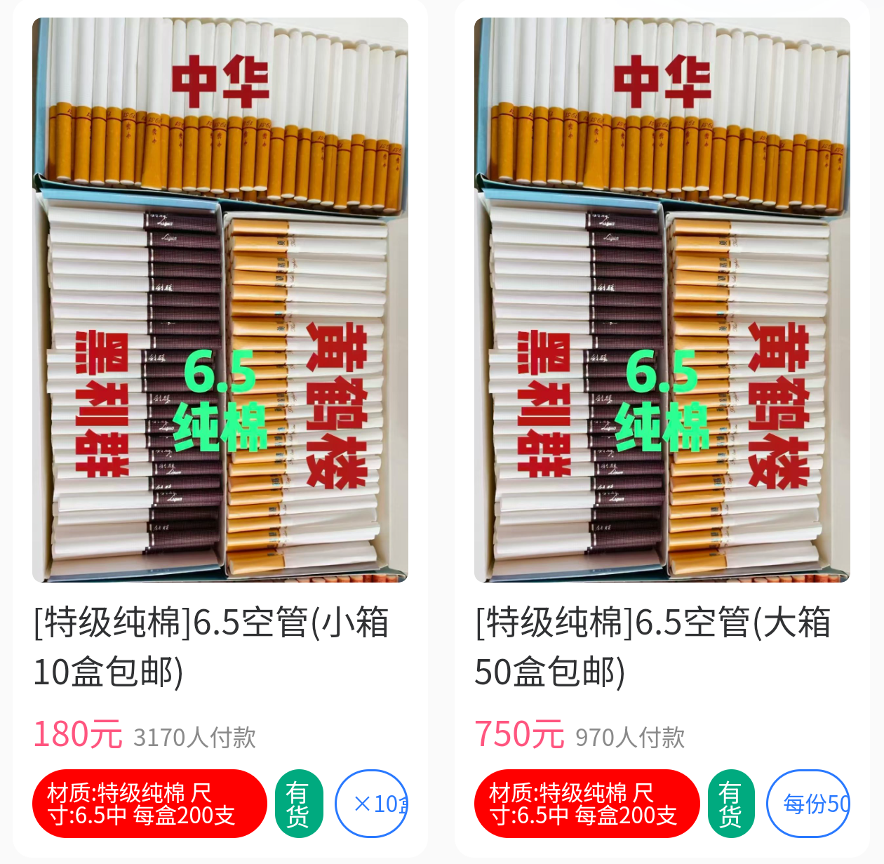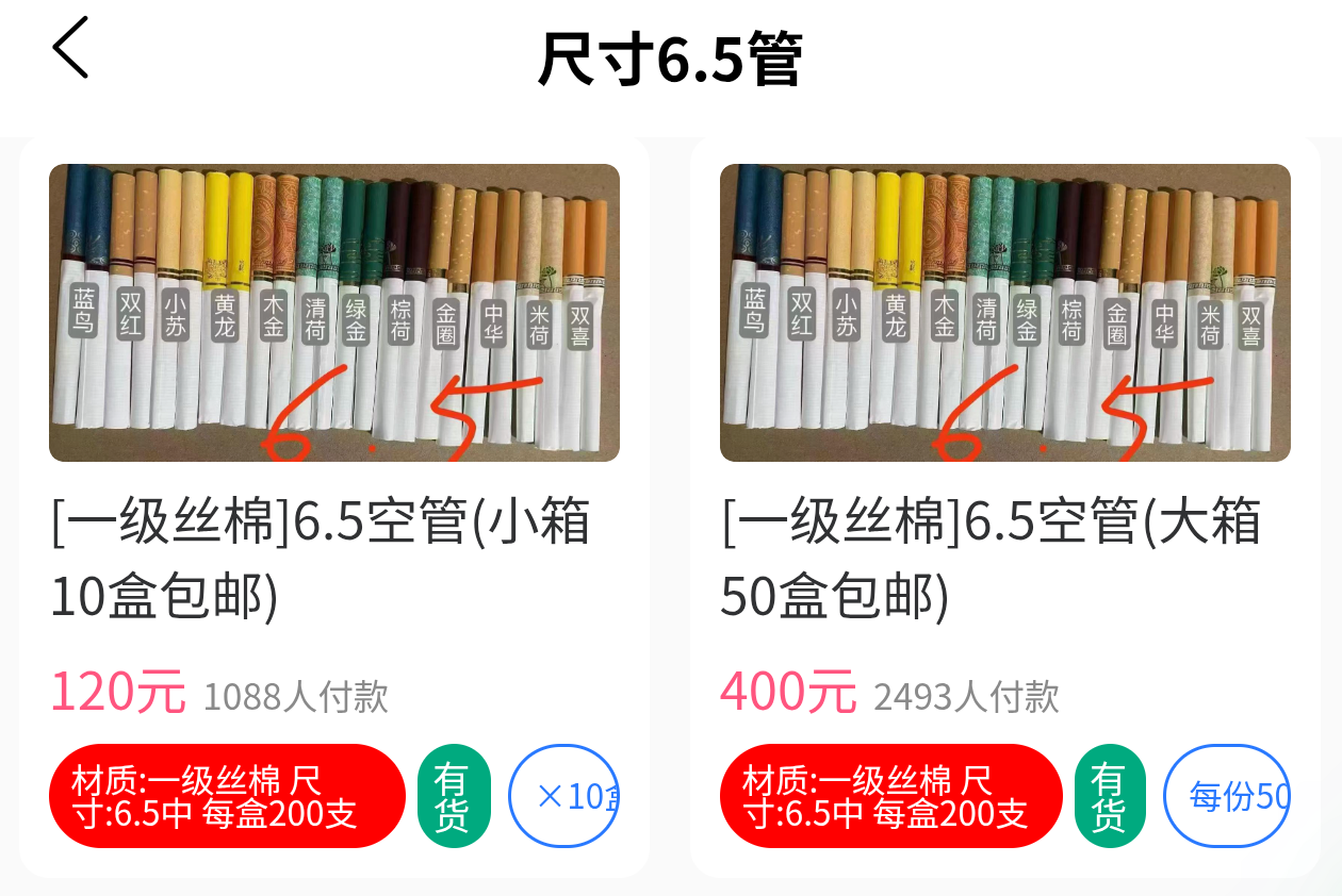 只按箱来发,小箱起十盒,大箱五十盒,每盒200支