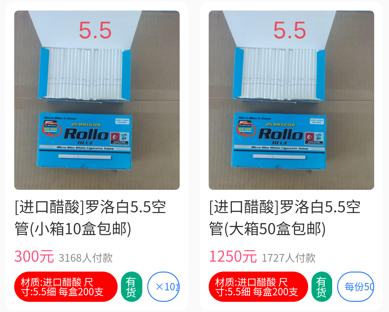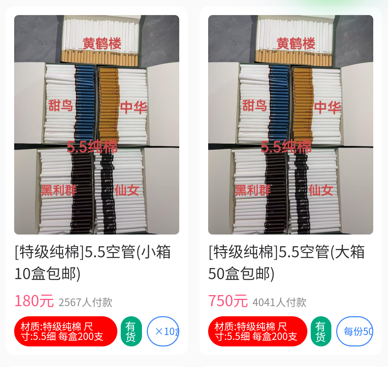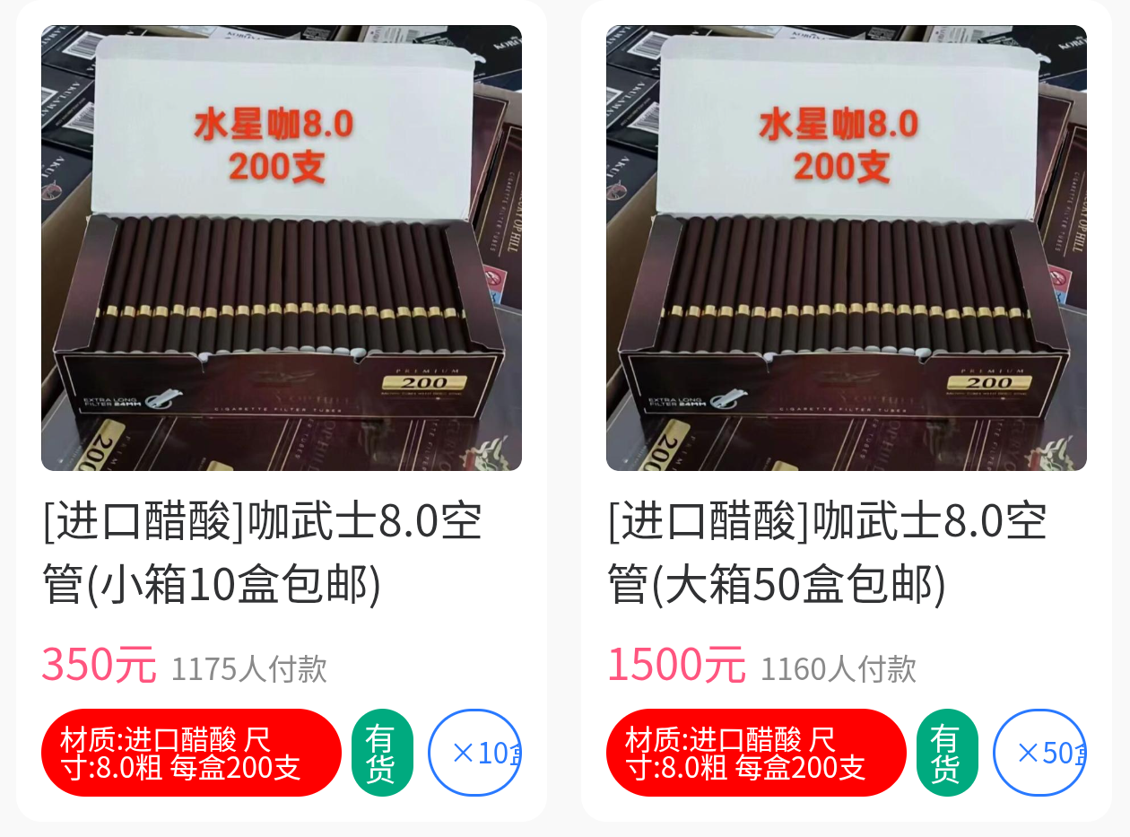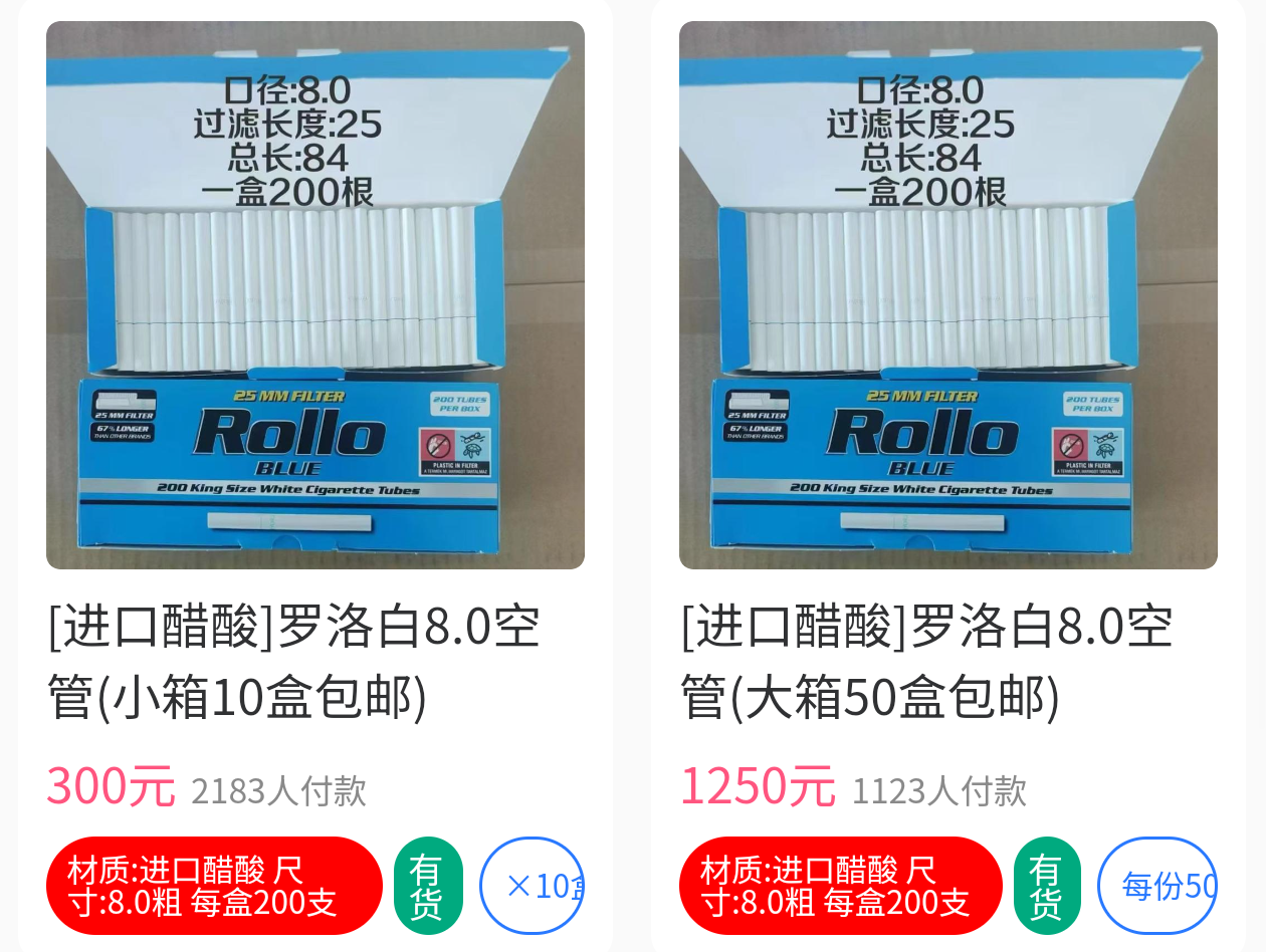 只按箱来发,小箱起十盒,大箱五十盒,每盒200支